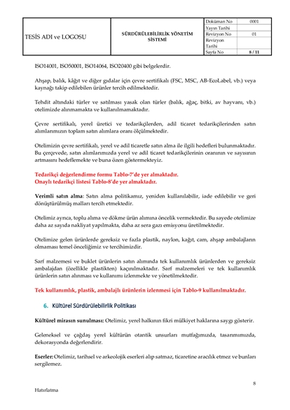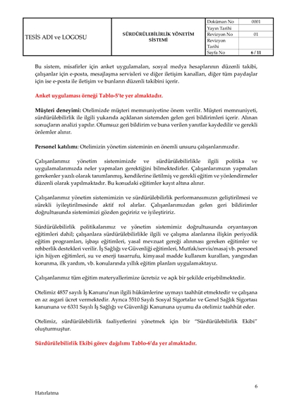 SÜRDÜRÜLEBİLİRLİK YÖNETİM SİSTEMİ